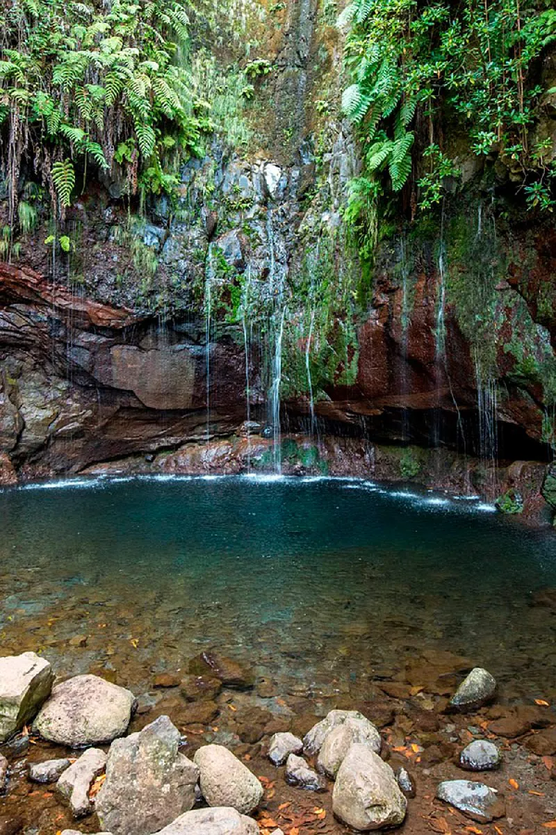 El recorrido termina frente a una gran cascada que cae desde más de cien metros de altura en una laguna rodeada de vegetación frondosa, uno de los rincones más bellos y fotografiados de Madeira.